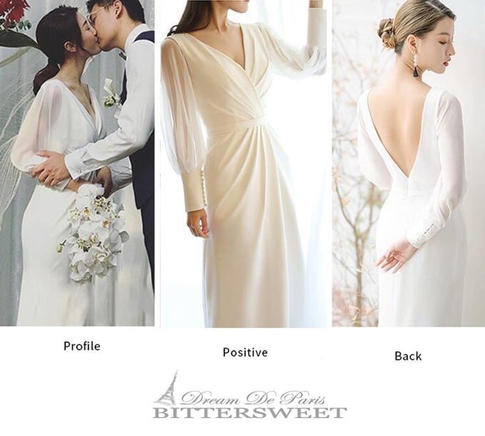 【wd134jx】長袖 ウェディングドレス ウエディングドレス Vネック トレーンドレス スレンダーライン ファスナー サテン オーダーメイド可能【XS〜XXL】