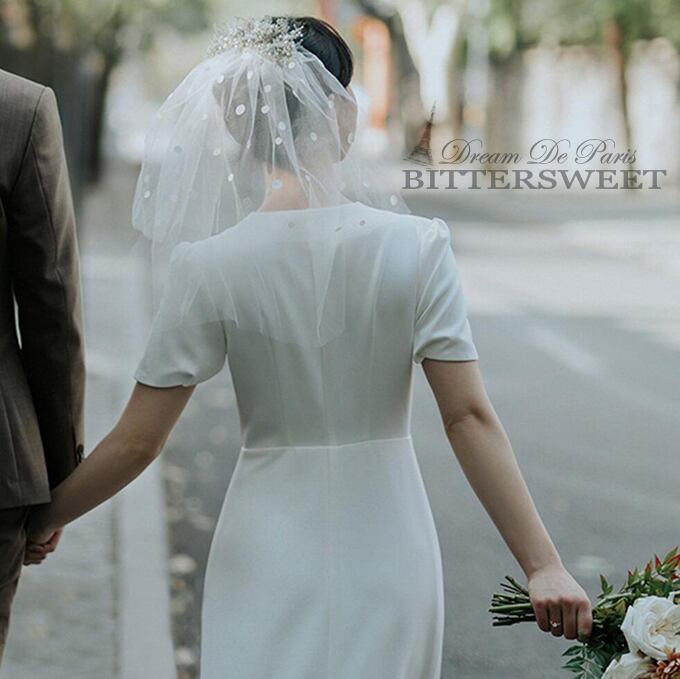 【wd135jx】ウェディングドレス ウエディングドレス ワンピース Vネック ミモレ スレンダーライン ファスナー サテン オーダーメイド可能 【XS〜XXL】