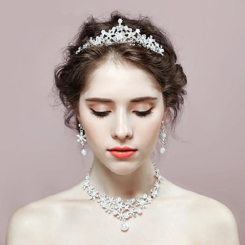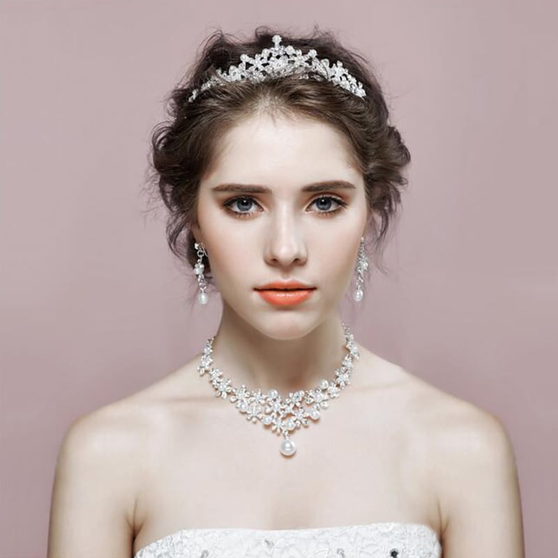 【ac1m】【即納】【3点セット】アクセサリー/ティアラ/ネックレス/ピアスorイヤリング/ウェディング小物/ヘッドドレス/ウェディングアクセサリー/ブライダルジュエリー