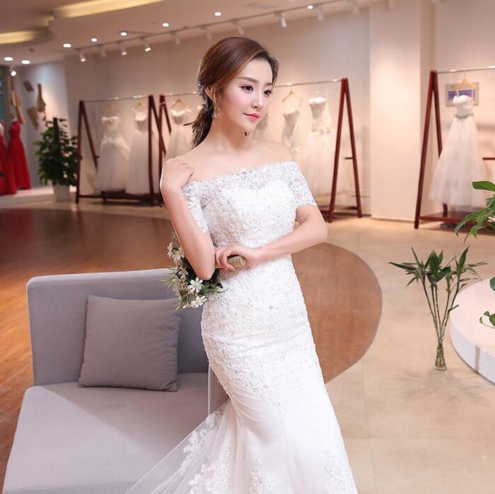 【wd235qs】ウェディングドレス マーメイドライン 編み上げタイプ トレーンドレス ウエディングドレス レディースドレス レース 刺繍【S〜XXL】