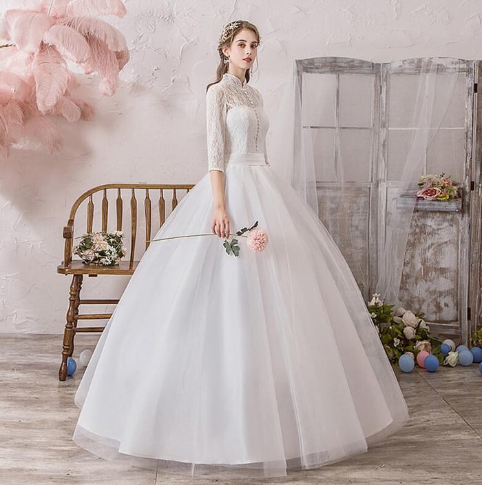 【wd242qs】ウェディングドレス 編み上げタイプ床付きタイプ Aライン 五分袖 ウエディングドレス レディースドレス レース 刺繍【S〜XXL】