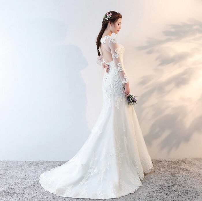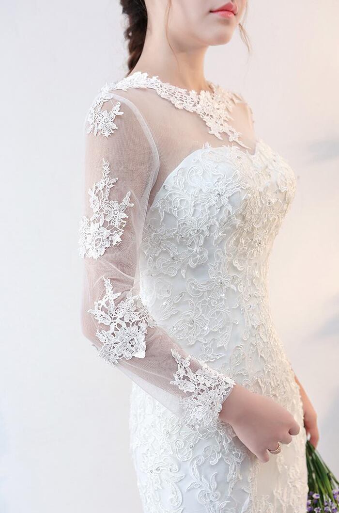 【wd247qs】マーメイド ウェディングドレス 長袖 編み上げタイプ トレーンドレス ウエディングドレス レース 刺繍【S〜XXL】