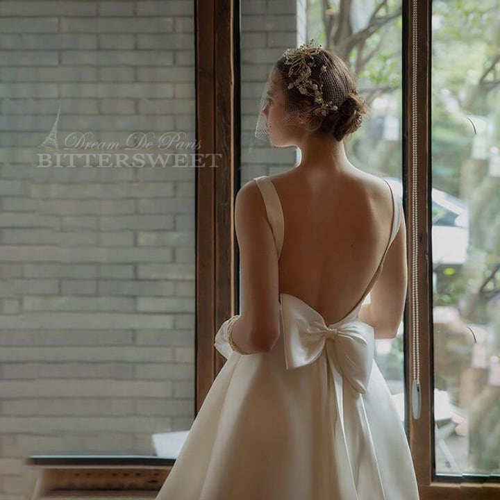 編み上げタイプのドレスは表記サイズより±2〜3cmの調節が可能となります。