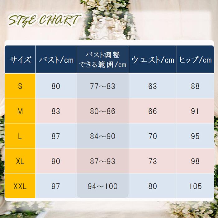 編み上げタイプのドレスは表記サイズより±2〜3cmの調節が可能となります。