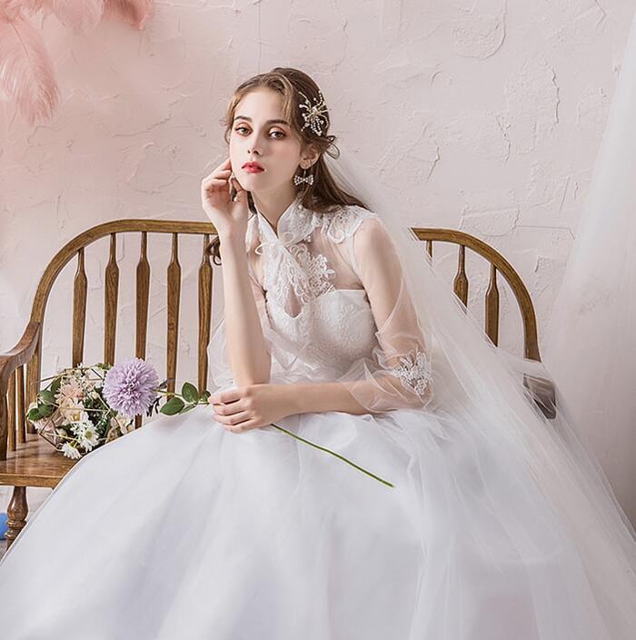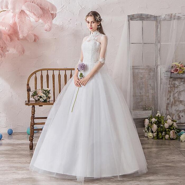 【wd291qs】ウェディングドレス Aライン 袖あり 編み上げタイプ 床付きタイプ ウエディングドレス レディースドレス レース 刺繍【S〜XXL】【wd291qs】