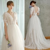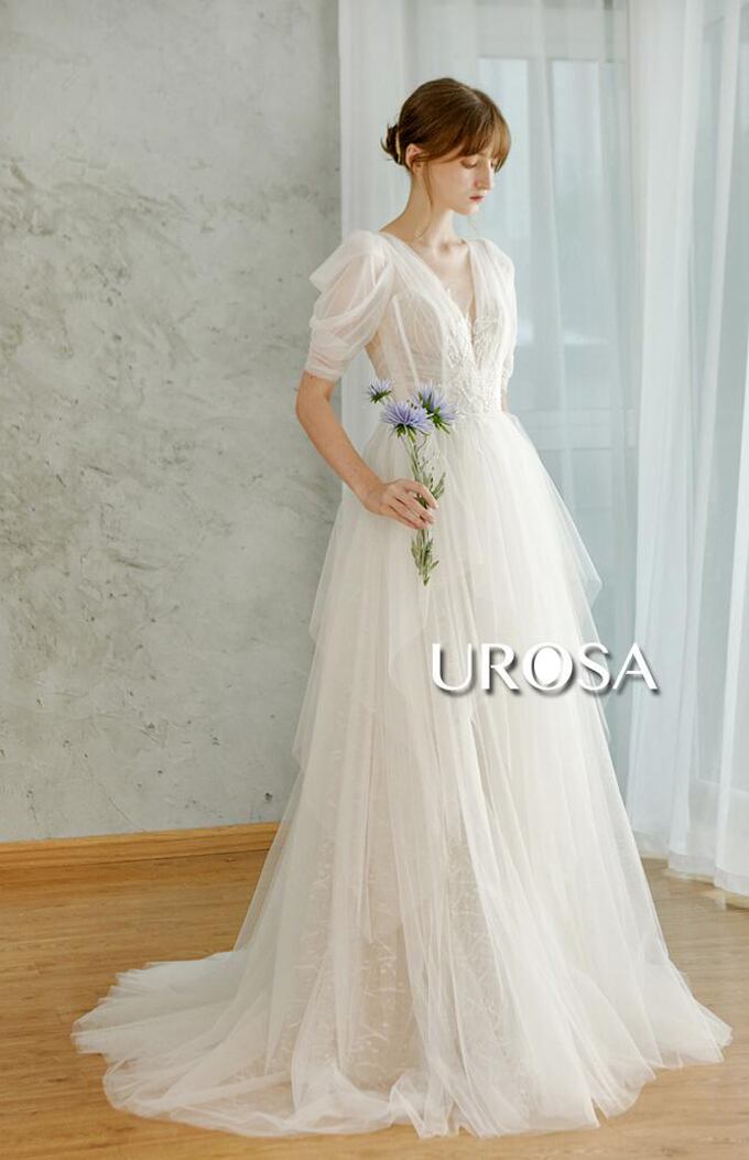 【ur31】ウエディングドレス ウェディングドレス トレーンタイプ 袖あり wedding dress ファスナータイプ 背中空き ウエディングドレス 前撮り 後撮り 披露宴 結婚式 演奏会 海外挙式ドレス【オーダーメイド可能】【S・M・L】