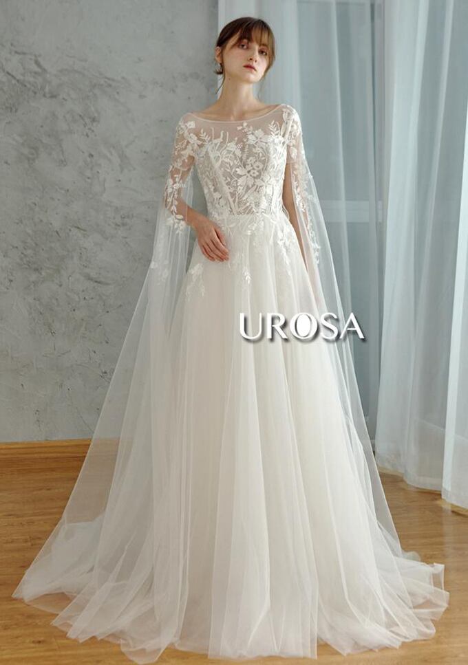 【ur25】ウェディングドレス ウエディングドレス トレーンタイプ 袖あり wedding dress ファスナータイプ 背中空き ウエディングドレス 前撮り 後撮り 披露宴 結婚式 演奏会 海外挙式ドレス【オーダーメイド可能】【S・M・L】
