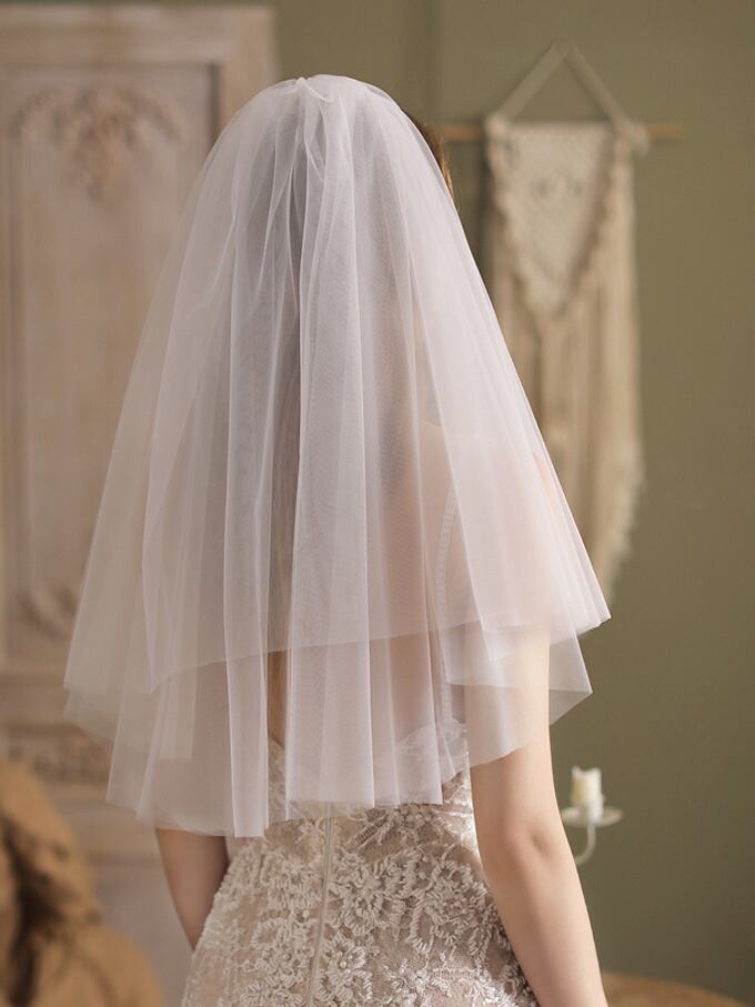 【ts188jd】【ミドルベール】ベール 2層 金属コーム付き ベールUP儀式OK ショートベール ミドル Wedding Veil ウェディング ウエディングベール【各層の長さは約50cm・62cm / 幅は約110cm】