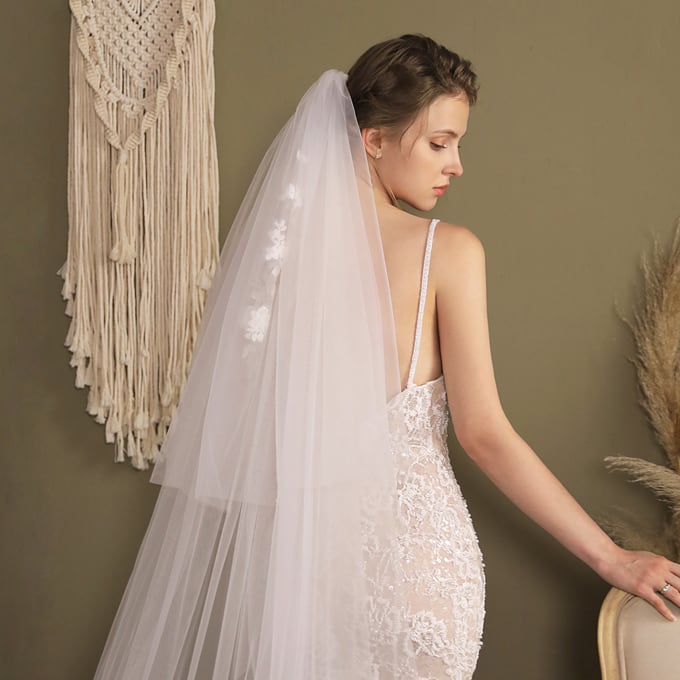 【ts197jd】ロングウエディングベール 【 2層・金属コーム付き・ベールUP儀式OK 】【幅は約260cm / 各層の長さは約70cm・270cm】結婚式 Wedding Veil ウェディングベール