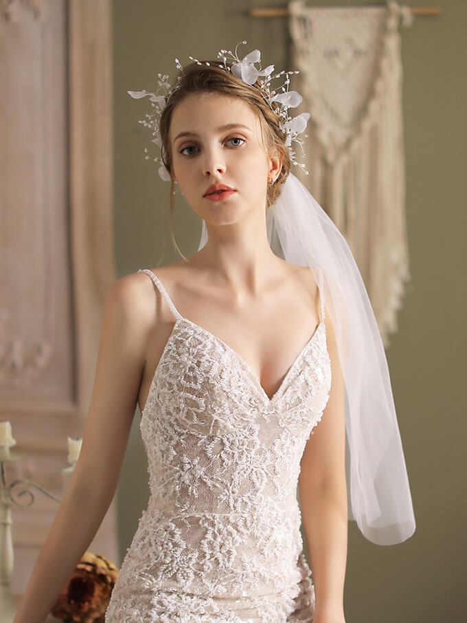 【ts200jd】【髪飾り付きのミドルベール】結婚式 ベール 1層 ウェディングベール Wedding Veil ウエディングベール 髪飾り レース【ベールの丈は約56cm】