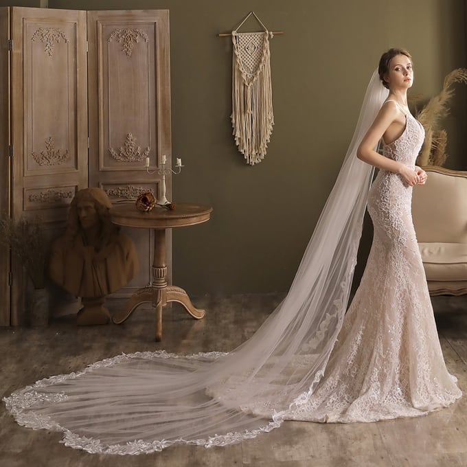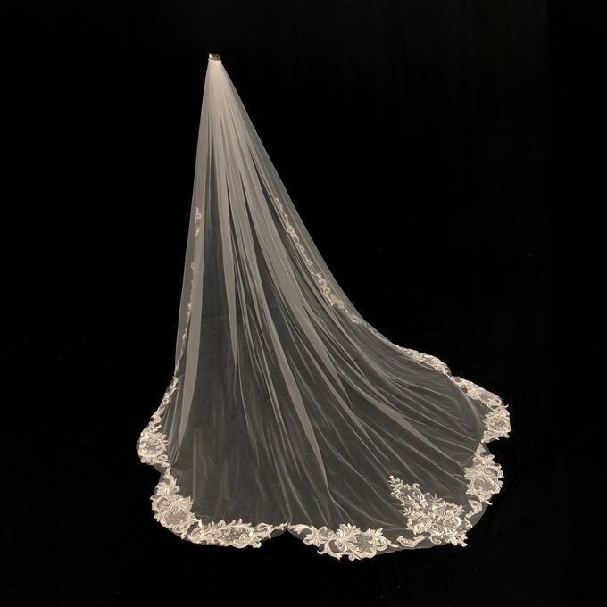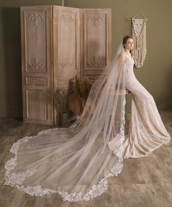 【ts202jd】ロングウエディングベール 珍しいデザイン【 1層・金属コーム付き】【幅は約250cm / 長さは約300cm】結婚式 Wedding Veil ウェディングベール