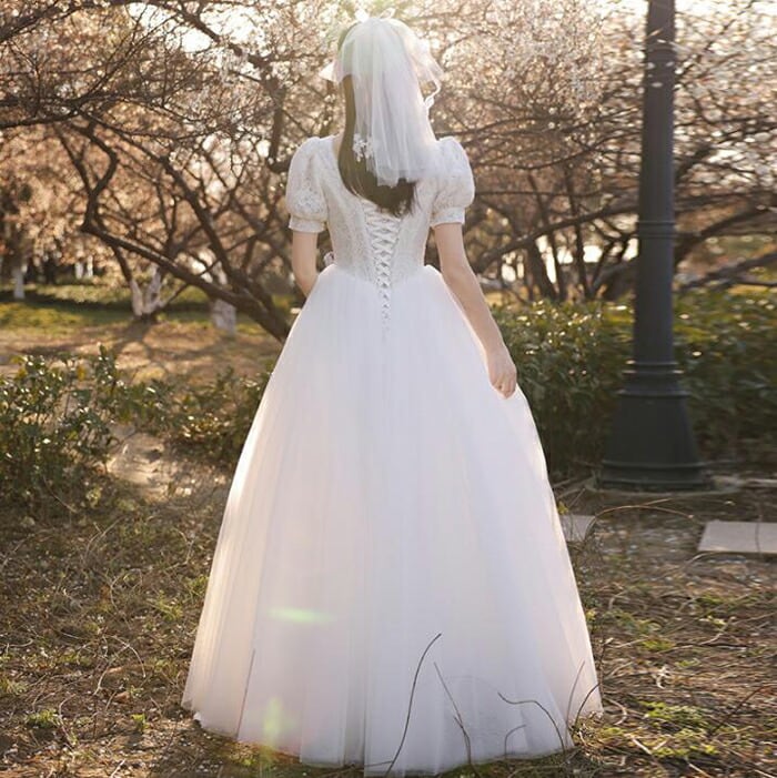【wd606ls】ウェディングドレス ウエディングドレス 編み上げタイプ レース Aライン ロングドレス 可愛い袖あり 前撮り 後撮り 披露宴 結婚式 演奏会 海外挙式ドレス【XS〜XL・オーダーメイド】